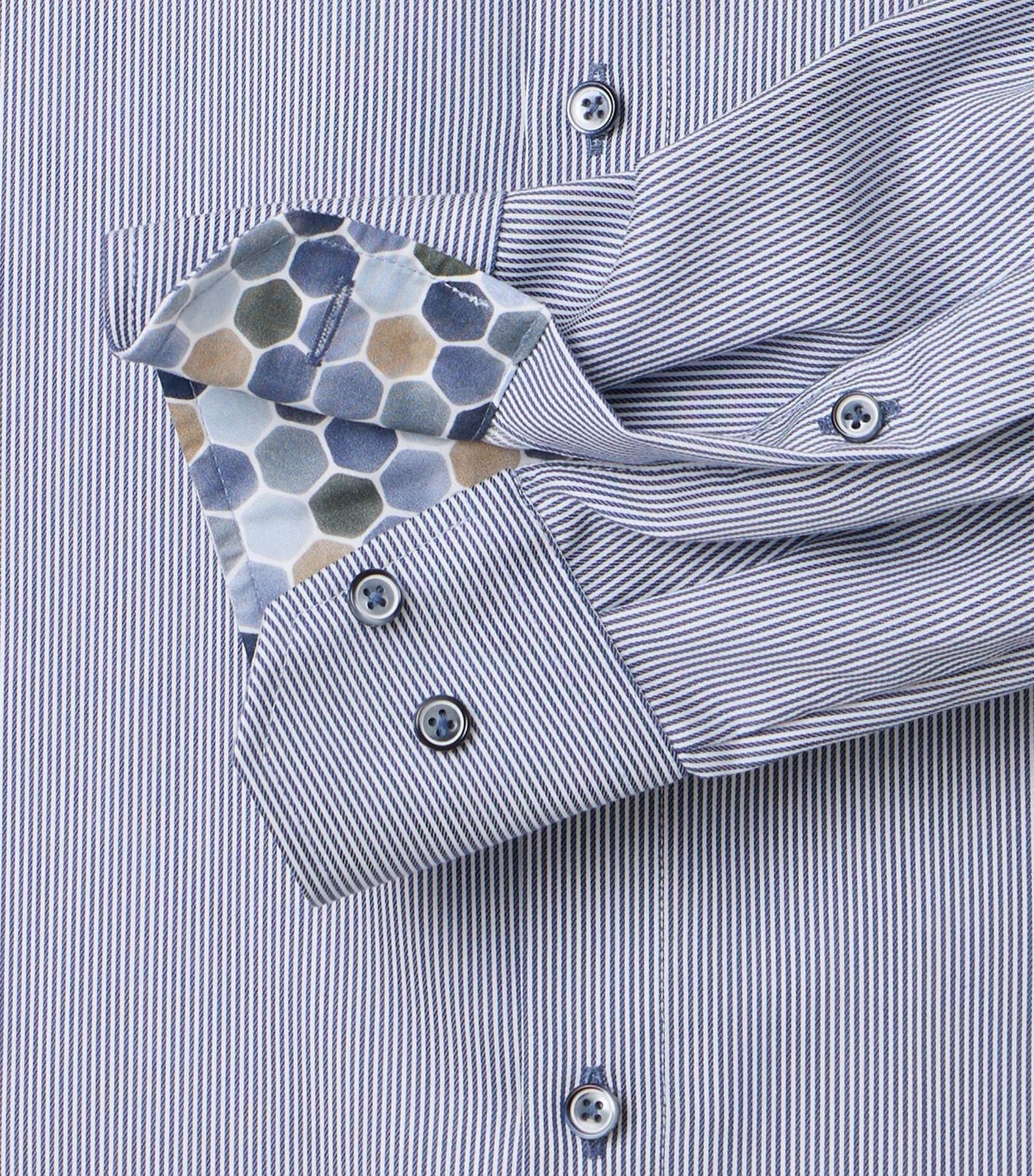 Das Herrenhemd in langärmeliger Ausführung überzeugt mit moderner, schlanker Passform für einen gepflegten Auftritt im Berufsleben oder bei besonderen Anlässen. Reine Baumwolle in schräg gewebter Twill-Qualität sorgt für Robustheit und angenehmen Tragekomfort. Das dezente Streifenmuster verleiht dem Hemd eine klassische, elegante Note. Der Button-Down-Kragen unterstreicht den zeitlosen Stil und ermöglicht vielfältige Kombinationsmöglichkeiten. Ob zu Anzughose, Jackett, Fliege oder Einstecktuch – dieses Businesshemd ist ideal für Büro, Treffen, Reisen oder Feiern.